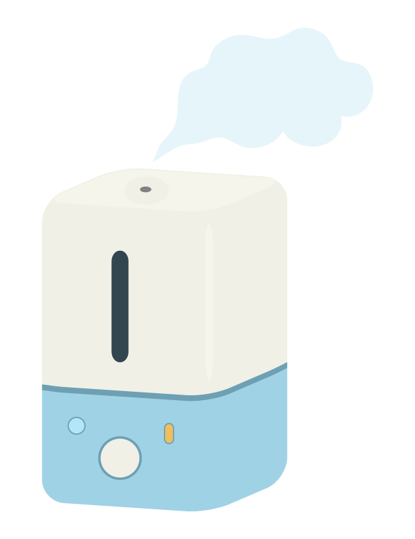 室内では加湿器や濡れタオルを使って湿度を保つ(40~60%が理想)