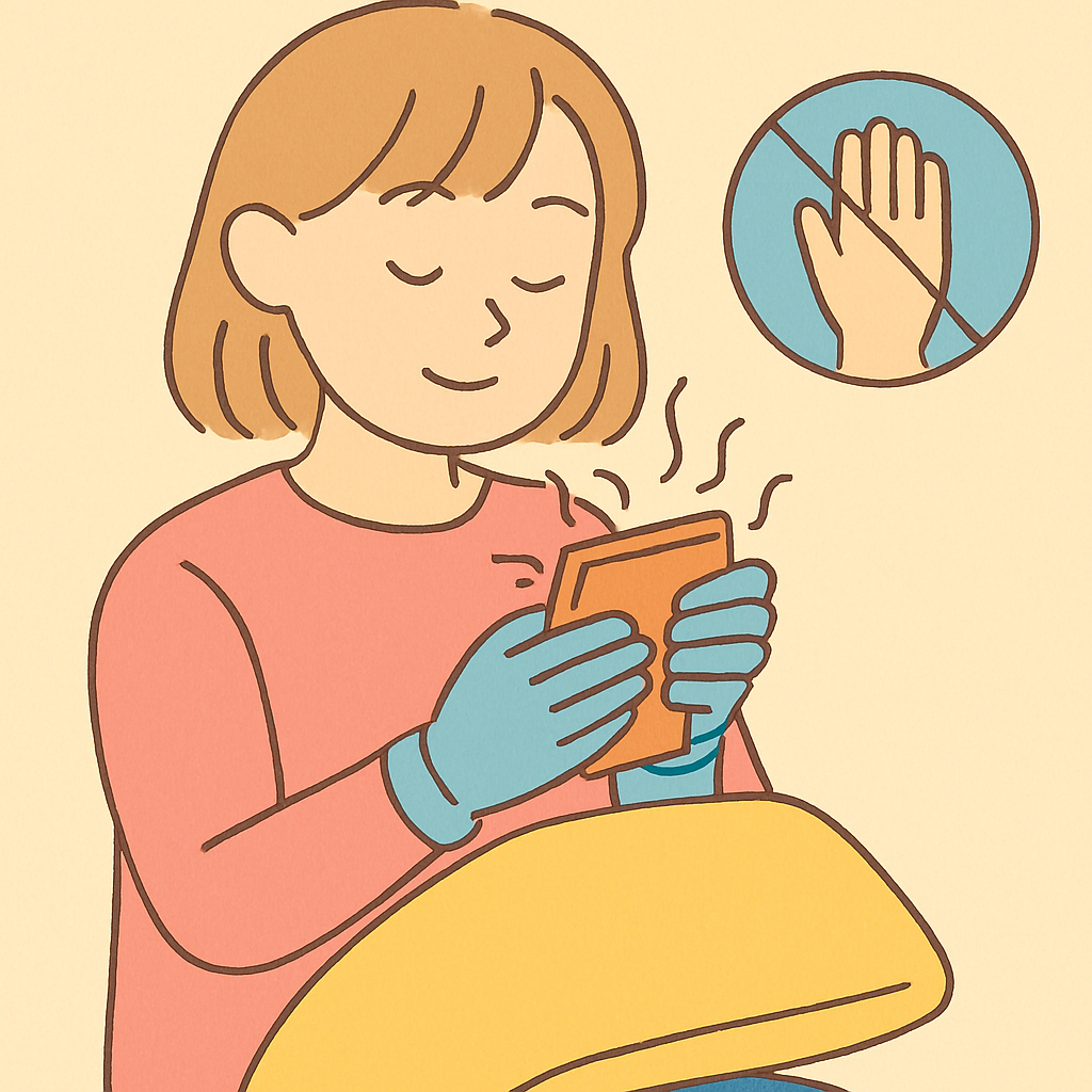 カイロは直接肌に当てない、貼るタイプは同じ場所に貼りっぱなしにしない、こたつでは薄手の布を挟むなど、肌との距離を作ることが欠かせません。