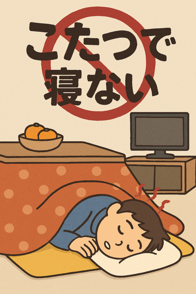 最も危険なのが「こたつ寝」。気持ちよさに油断して寝入ると、長時間足が温熱に晒され重度の低温やけどに至るケースがあります。必ず布団で寝る習慣を。