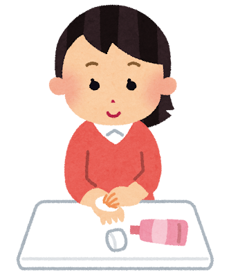 ・アルコール消毒後は、必ず保湿をセットで行う。