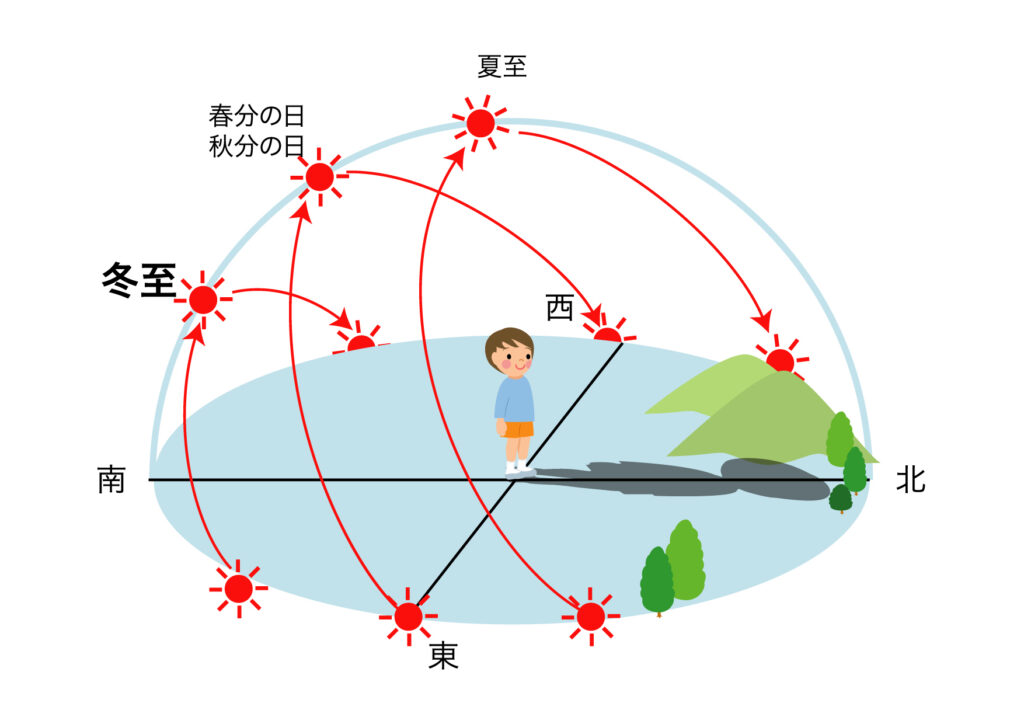 私たちの地球は自転軸が約23.5度傾いているため、季節ごとに太陽の高さや昼夜の長さが変わります。冬至の日は、太陽が最も南に位置するため、北半球では日が一番短く、夜が一番長くなるのです。逆に南半球では夏至にあたります。この太陽の動きを理解することは、古代から農耕や生活リズムを決めるうえで欠かせませんでした。