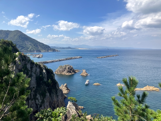 「秋に海?」と思うかもしれませんが、実は10月は海も狙い目。鳥取県の浦富(うらどめ)海岸では、透明度抜群の海と奇岩が連なる景観を楽しめるクルーズが人気です。夏のような混雑もなく、穏やかな気候の中でゆっくりとした時間が過ごせます。運が良ければ、海の上から紅葉も見られることも。ドライブがてら、日本海の美しさに癒されてみてはいかがでしょうか。